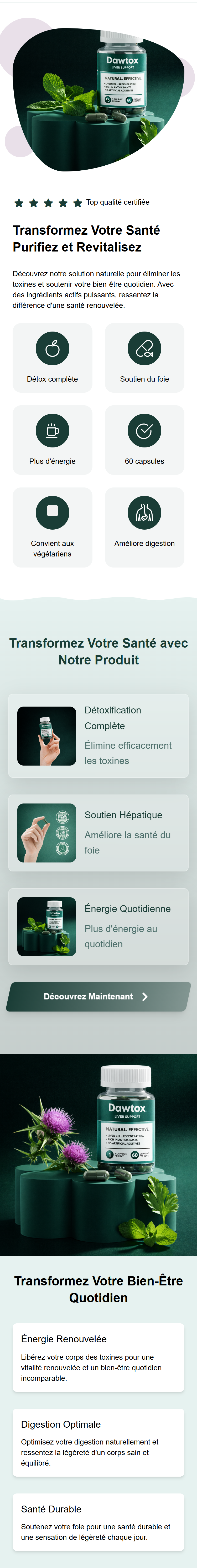 Notre produit est conçu pour soutenir naturellement la détoxification du corps et améliorer la santé du foie.